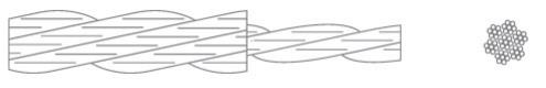 Unidirectional-or Unidirectional Concentric characterized by a central wire surrounded by one or more layers of helically laid wires in a geometric pattern, with the same lay direction and an increasing lay length.